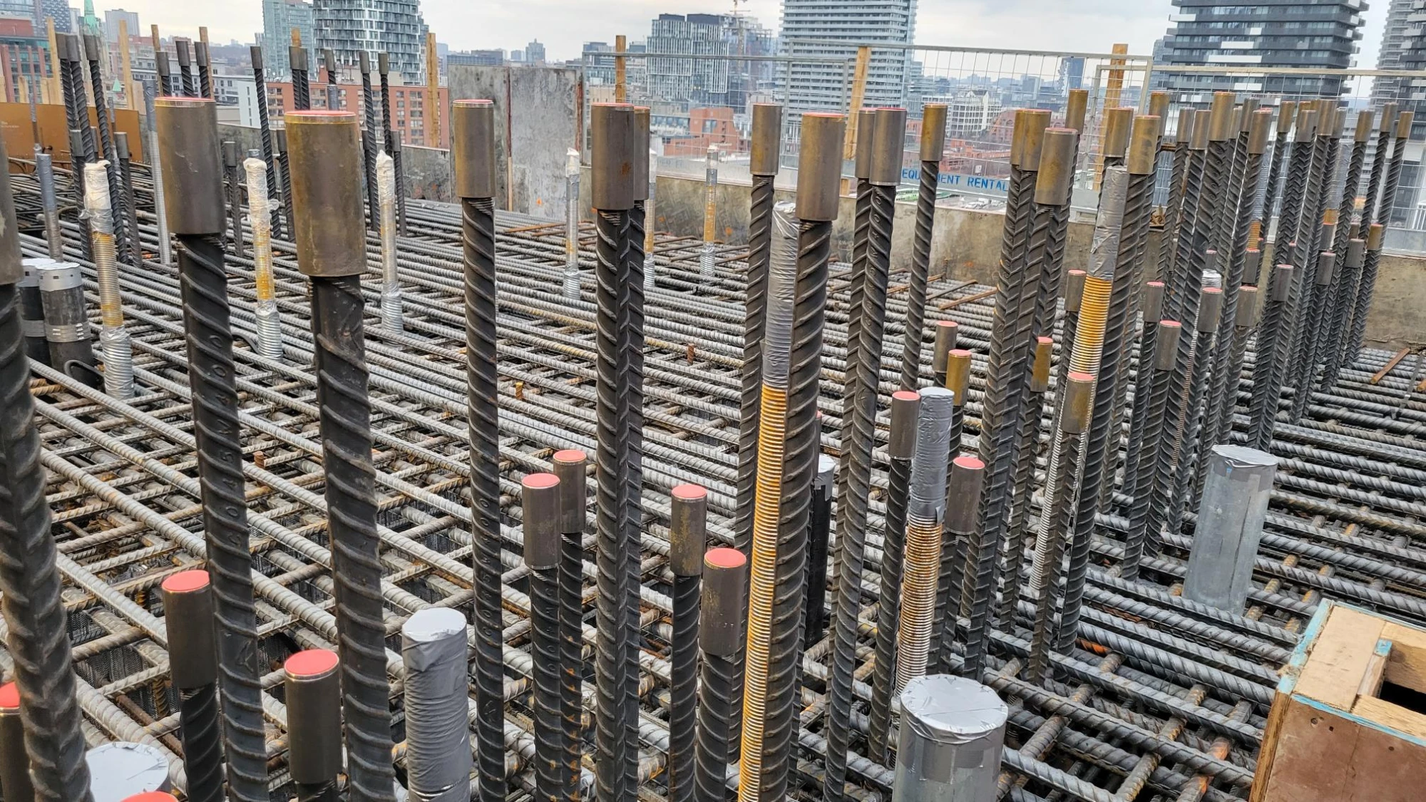 Cast-in-place reinforced concrete construction combines the compressive strength of concrete with the tensile capacity of reinforcement. Reinforcing steel, or rebar, is the most common reinforcing but is not the only option: stainless steel, glass fibre, carbon fibre, and basalt reinforcing bars are available, in addition to high-strength cables and rods for post-tensioned applications. At Jablonsky, we select the most appropriate reinforcing based on the specific goals and requirements of each project.
