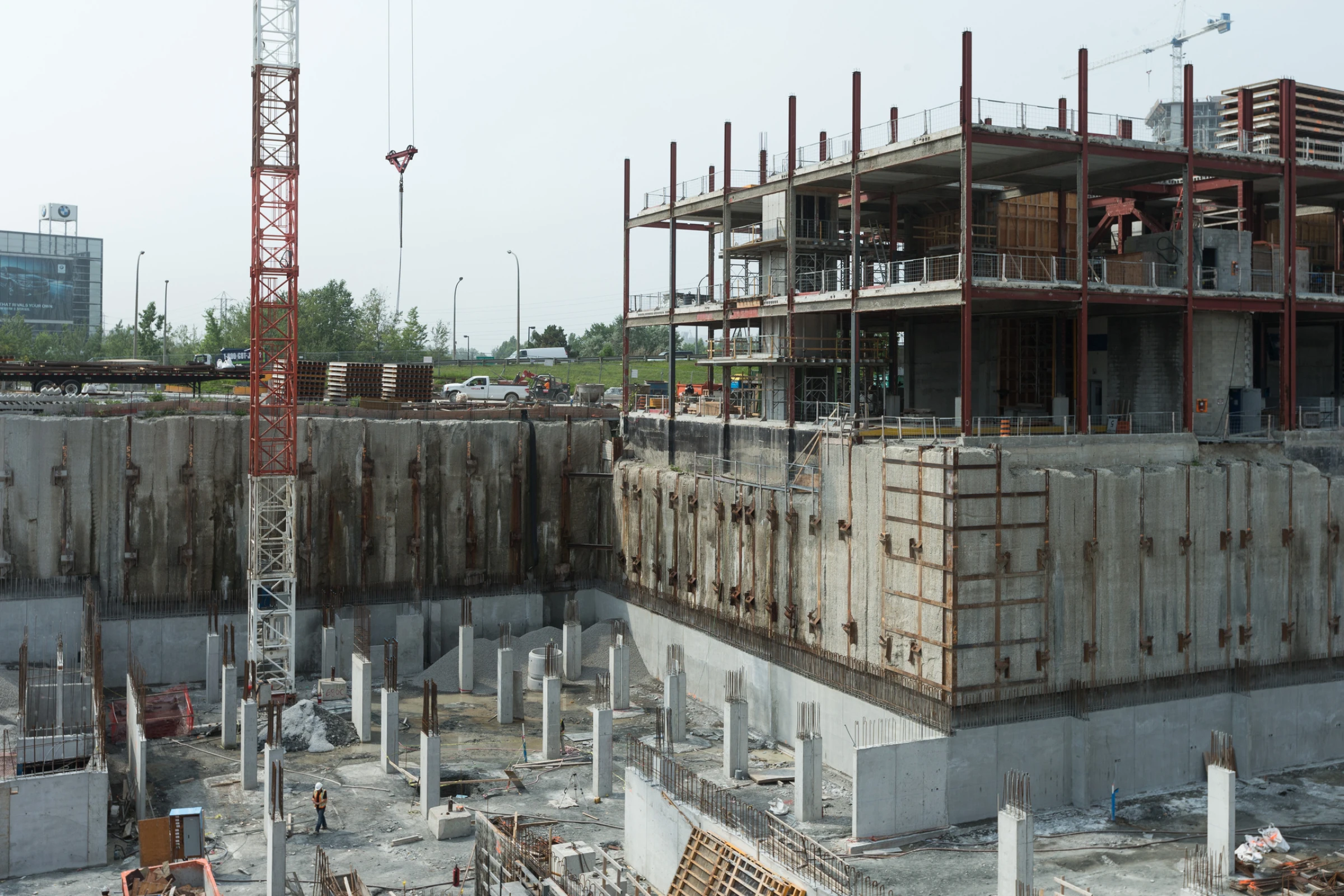 The steel building remains on the original caissons with several additional caissons for the new vertical structure. The project employed shotcrete concrete placement for new elevator cores within the existing building for lateral reinforcing to accommodate the cast-in-place addition above. Several of the steel columns required reinforcing.